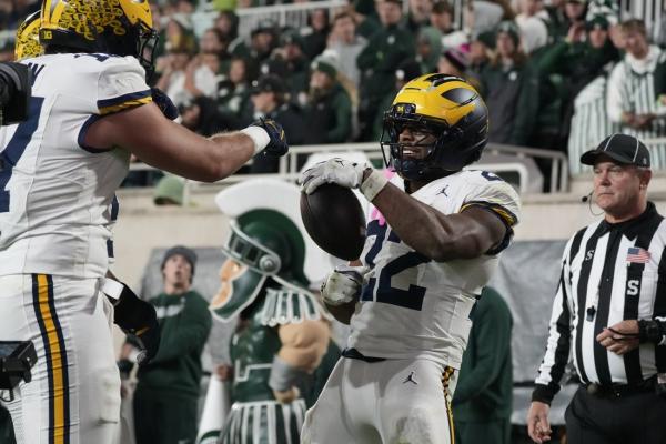 Justice Haynes (2 TDs), carries No. 25 Michigan past Michigan State